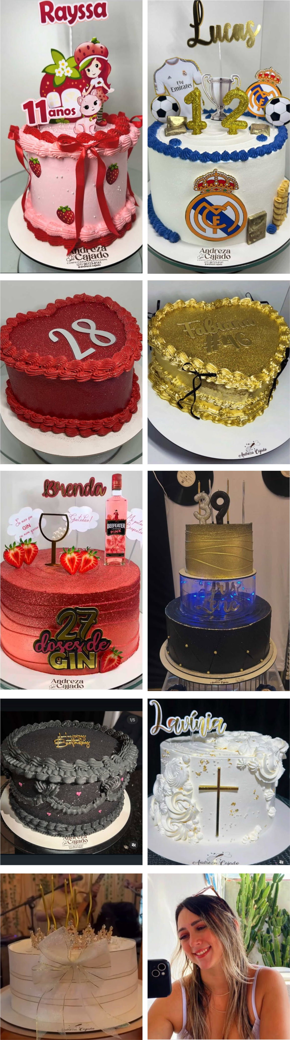 Há dez anos, Andreza Cajado iniciou sua trajetória na confeitaria, mergulhando em um universo onde cada ingrediente selecionado é cuidadosamente transformado em arte.