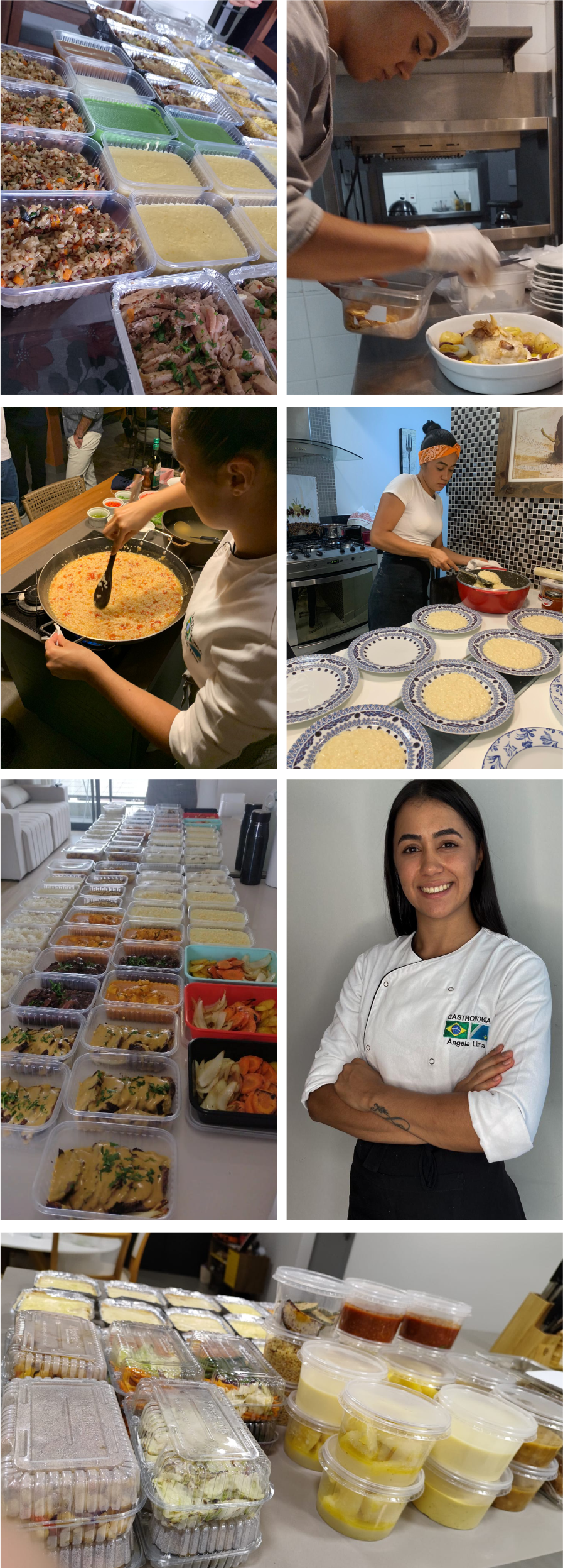 Hoje, como microempreendedora, construiu um trabalho que reflete seus valores. Produz refeições congeladas artesanais, pensadas para facilitar a rotina de quem busca praticidade sem abrir mão do sabor, da qualidade e do aconchego da comida caseira. Cada preparo carrega um toque autoral de chef.