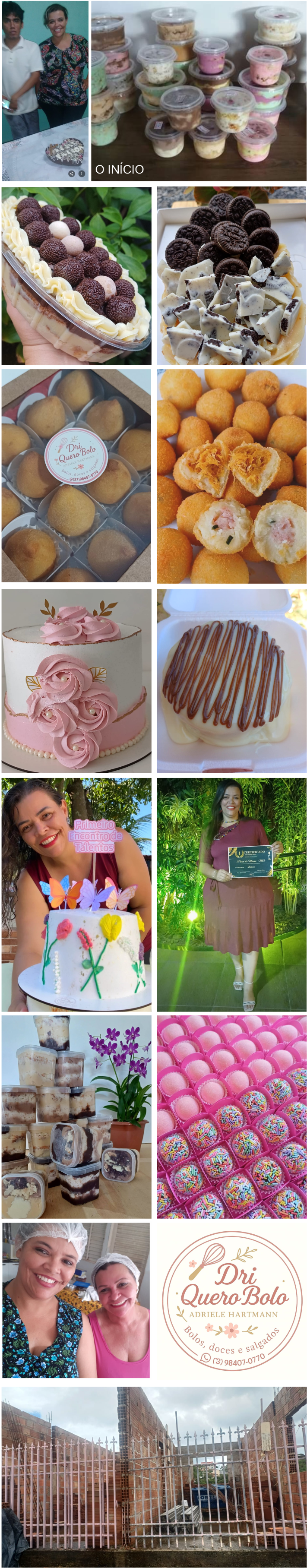 Em 2021, a empreendedora ampliou o negócio para os salgados, hoje sua grande paixão, investindo em equipamentos e formação. O reconhecimento público veio em setembro de 2023, quando venceu o concurso de Melhor Confeiteira de Pará de Minas. Em 2025, mais um passo de fé: a construção da loja própria, realizada em mutirão voluntário por irmãos de fé das Testemunhas de Jeová.