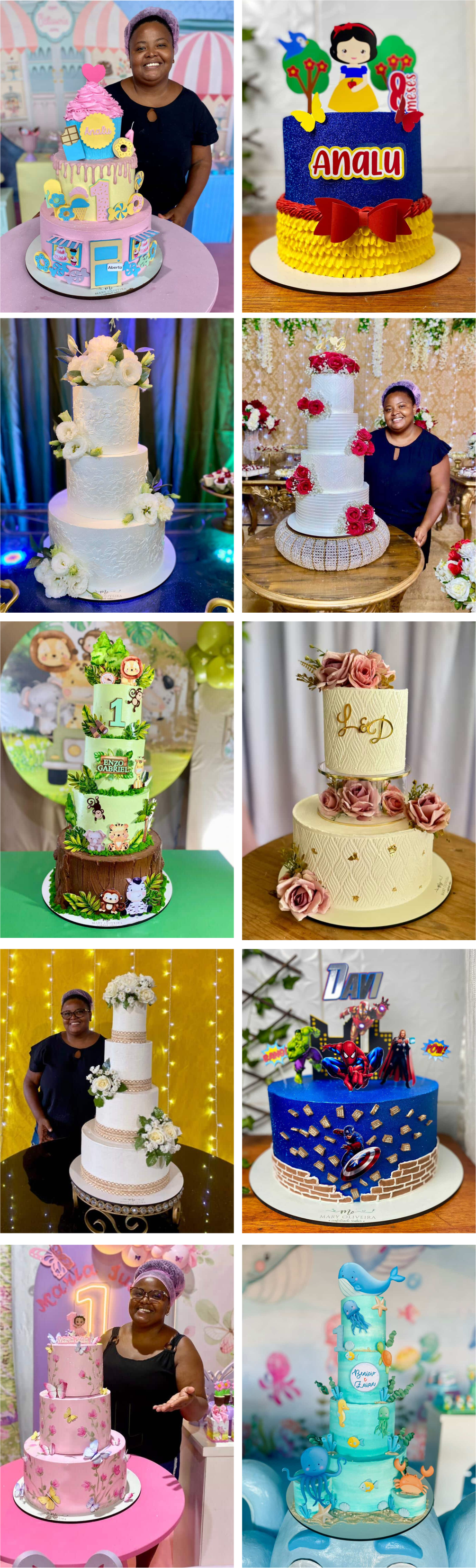 Especialista em bolos decorados com chantininho, além de cupcakes e brigadeiros, Mary transforma ingredientes selecionados em experiências afetivas.