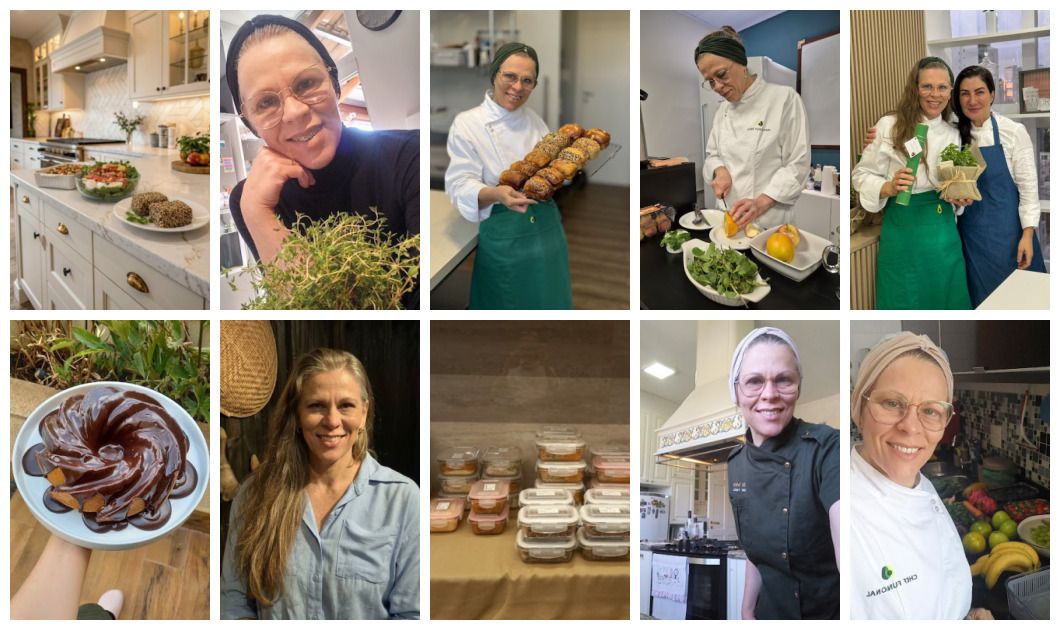 Paralelamente, também contribui na formação de novos profissionais como coordenadora e mentora na Formação de Personal Chef da Escola Fran Tonello. Aos 48 anos, iniciou a graduação em Nutrição, reforçando seu compromisso em unir ciência e sensibilidade.