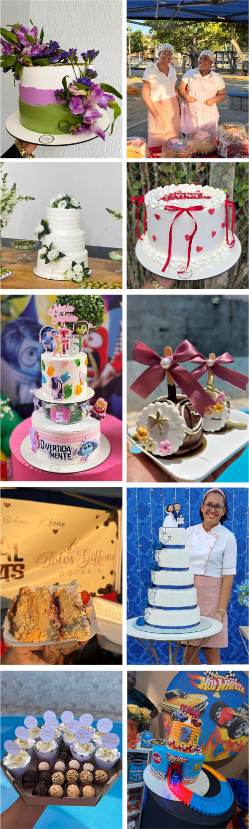 Sem ponto físico por enquanto, a Bolos Giffone atende exclusivamente por encomendas online, com pedidos agendados. Mas o plano de abrir uma doceria com atendimento ao público já está nos projetos da dupla. Enquanto isso, a marca mantém presença ativa na comunidade por meio do Festival de Tortas, realizado todos os sábados, às 16h, na Praça da Fazenda Grande 2, em Cajazeiras, no Quiosque do Acarajé Giffone. O evento se tornou um ponto de encontro para quem busca qualidade e sabor em um ambiente acolhedor.