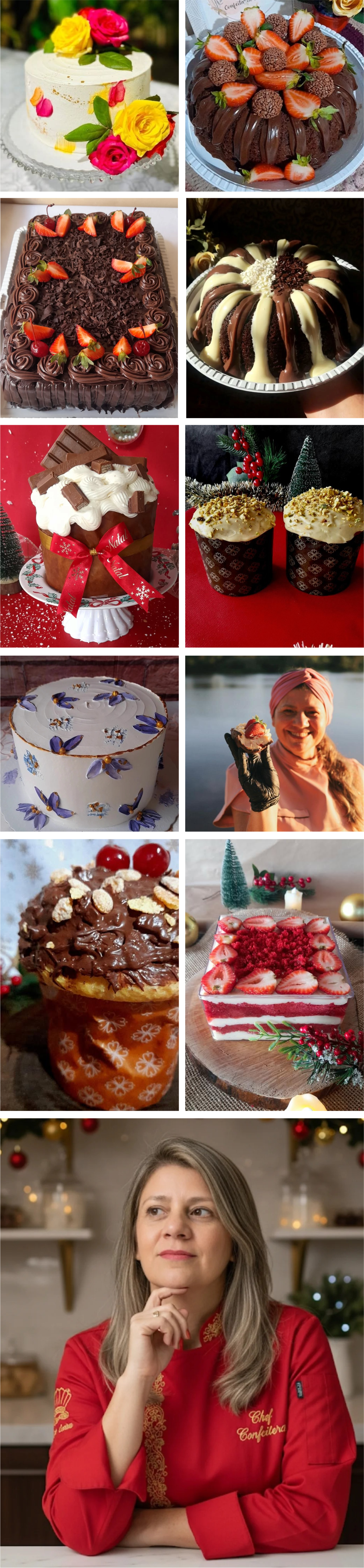 À frente da marca está Rosângela, formada em gastronomia, especialista em transformar ingredientes selecionados em experiências de afeto, do simples bolo de café ao mais elaborado confeitado.