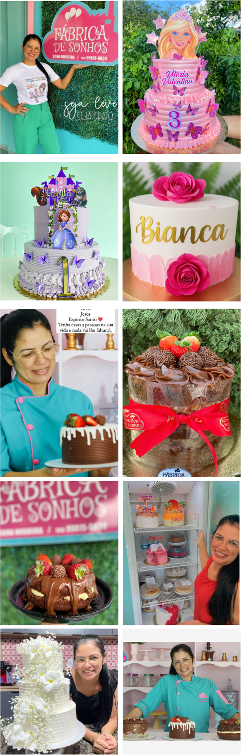 A trajetória de Kaina Nogueira é marcada por fé, superação e propósito. Confeiteira há oito anos, também é decoradora, pastora, mentora e escritora, múltiplos talentos que se encontram em um mesmo ponto: o dom de transformar ingredientes selecionados em experiências cheias de significado.