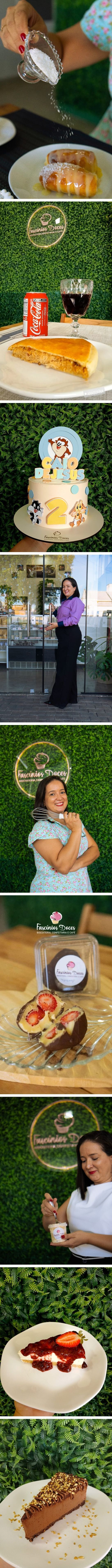 Mesmo atuando em sua área de formação até 2019, a confeitaria sempre teve espaço garantido. Mas foi após a pandemia que o sonho ganhou forma concreta: em 2022, nasceu oficialmente a Fascínios Doces, um espaço que une elegância, sabor e memórias em cada detalhe.