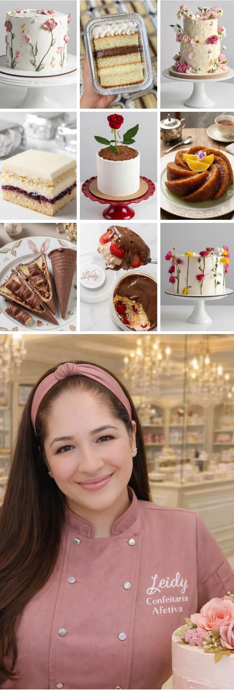 Em 2016, Leidy decidiu seguir os passos maternos e se dedicar integralmente à confeitaria. Surgia então a Leidy Confeitaria Afetiva, um projeto que carrega no nome uma assinatura de arte e sabor artesanal — uma referência construída com ingredientes selecionados, cuidado em cada detalhe e o compromisso de oferecer mais do que doces: experiências.