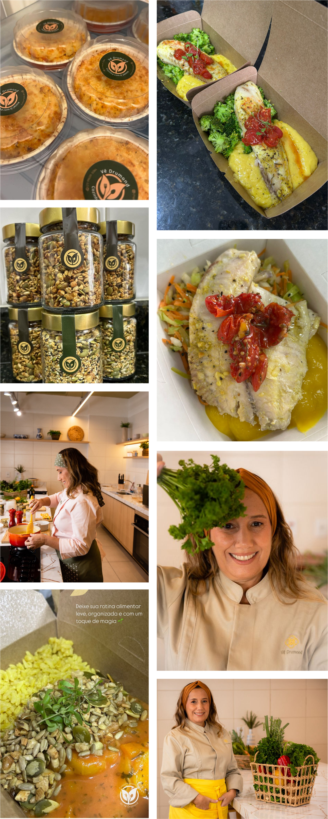 Ao lado de nutricionistas e endocrinologistas, ela cria cardápios sob medida, atendendo desde atletas de alta performance a pacientes bariátricos e pessoas com restrições alimentares. Recebe os planos alimentares, interpreta e transforma em refeições equilibradas, saborosas e sempre frescas.